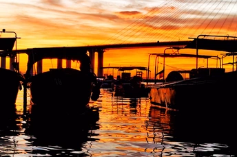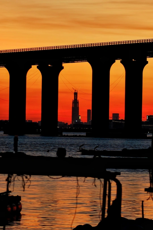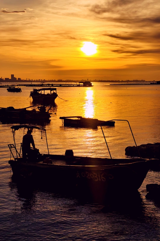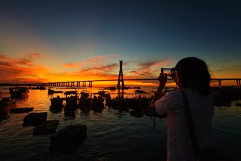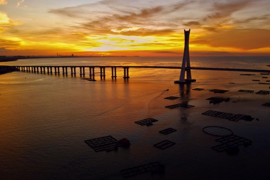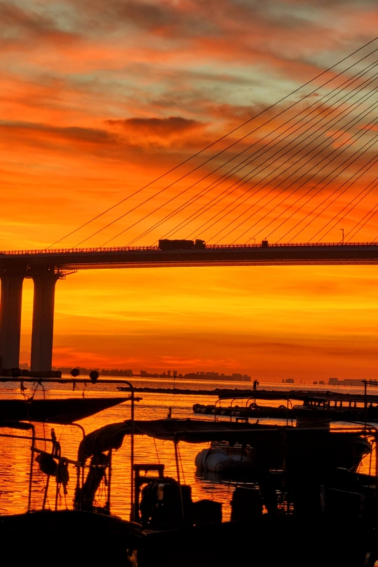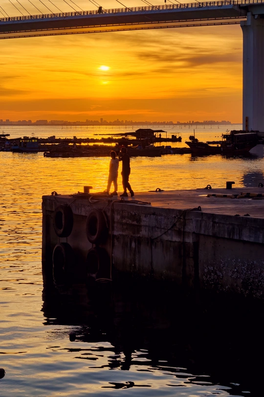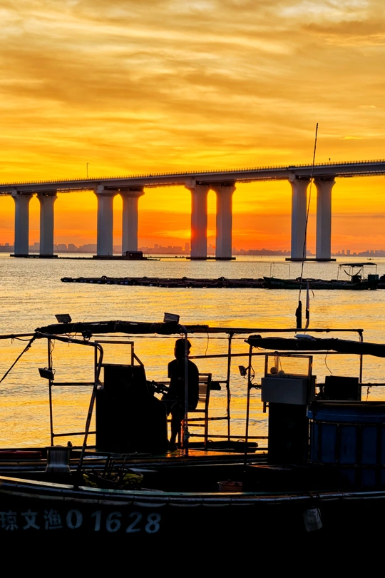 海文大桥位于海南铺前湾海域,是海口市与文昌市埔前镇的跨海通道,站在位于东边的埔前码头,观看海文大桥的日落晚霞时刻,大桥、海水与霞光交相辉映,鱼船与游客游走其中,甚是观霞好去处!