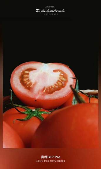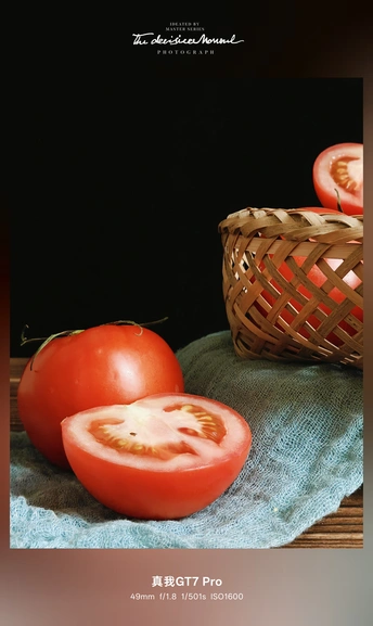 用真我GT7 Pro镜头,捕捉食材的质感与温度。番茄的绯红饱满,鸡蛋的温润细腻,每一处细节都被清晰定格,在光影交错间,诉说着生活里的烟火诗意,让平凡食材也拥有了艺术般的呈现。