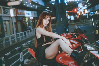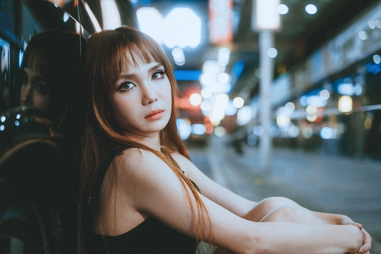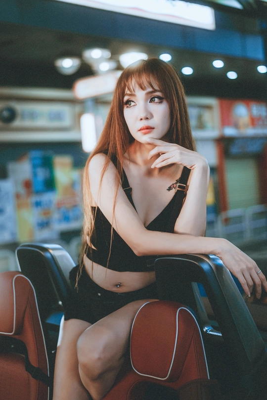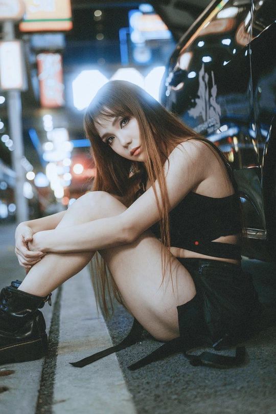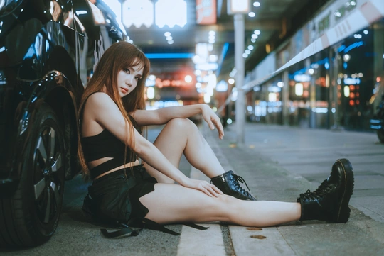 谁说夜晚只属于睡眠? 对于她来说,夜是自由的开关,引擎的轰鸣是心跳的BGM,霓虹灯光是专属她的彩虹,用一连片快门声音,定格下这座城市最飒的风景。 拍摄总结:利用便利店和路灯等等点光源,给焦外制造斑驳背景;模特侧身靠坐,俯拍更能拍出大长腿~ 出镜:Miko