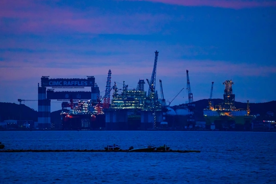 从画面呈现来看,这张照片很出色。 暮色下的海面与远处的工业设施形成独特景致,天空的粉紫与海面的蓝调相互映衬,色彩搭配和谐且富有氛围感。工业设施的灯光点缀其间,既展现出工业生产的蓬勃活力,又为画面增添了灵动的视觉焦点,整体构图平衡,将工业之美与自然暮色融合得较好,不过若能在细节处,比如近景水面元素的利用上更巧妙些,会更完美。
