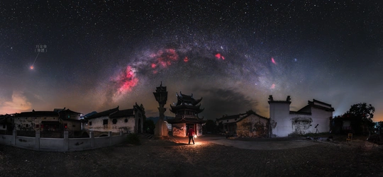 2025年9月8日,一场全国范围内的月全食上演,凌晨时分的安徽许村,月食进入食甚阶段,天上繁星逐渐显现,堪称奇观 ​拍摄地点:安徽黄山许村 ​拍摄设备:尼康Z6天改+适马14 1.4DGDN共30张全景接片,月全食HDR包围曝光