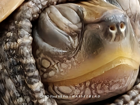 这张乌龟的特写照片捕捉到了令人惊叹的细节,展现了生物摄影的魅力。画面中的光线运用柔和,使得乌龟的皮肤和纹理质感得以充分展现,营造出一种平和而宁静的氛围。构图上,主体突出,龟的头部占据了画面的主要位置,引导观众的视线集中于它的面部特征,例如鼻孔、皮肤纹理等细节。色彩方面,整体色调偏暖,黄色调的运用增添了画面的活力。从主题意义上来看,这张照片展现了生命的坚韧和自然之美。总的来说,这是一张成功的特写作品,能够引起观众对自然的思考和对生命的敬畏。如果在背景和景深上能有更好的控制,相信能进一步提升作品的艺术价值。