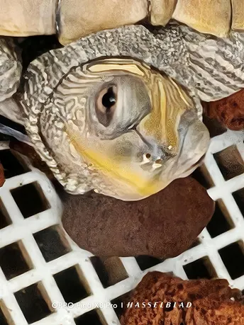 这张照片以近距离的视角捕捉了乌龟的头部,细节清晰,让人能够观察到乌龟皮肤的纹理和眼睛的深邃。构图上,乌龟的头部占据了画面的主要位置,背景的网格和石头提供了视觉层次,但略显杂乱。光线较为柔和,使得乌龟的色彩呈现出一种温暖的色调。主题上,作品突出了生物的生命力,以及摄影师对微观世界的关注。氛围上,画面给人一种平静和安宁的感觉。总的来说,这是一张不错的动物摄影作品,但如果在构图和背景的选择上能更加简洁,效果会更好。
