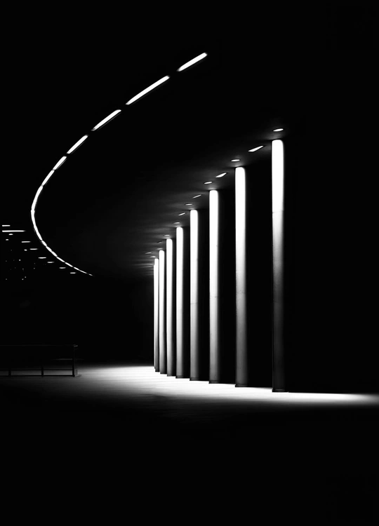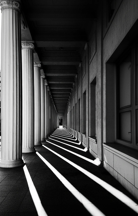 光影交错,恍若时间的刻痕。明与暗相搏,又相融,灰的中间地带藏了无限层次。银盐沉淀下来的,是物事的魂灵,而非仅仅形貌。 一束光斜斜地切过,人脸便半在明处,半在暗处,皱纹里藏着不可言说的故事。暗角渐晕开去,而高光处又亮得灼眼,恍如人生之两极。那粗粝的颗粒,是时间的尘埃,也是记忆的质感。 黑与白,原是最简单的二色,却在此间生出无穷变幻,将万象收束于灰调之中,反倒比彩色更见本质了。
