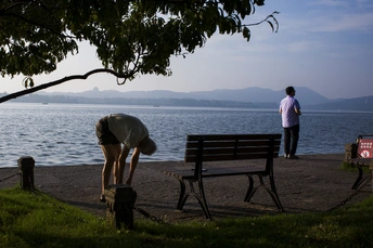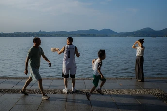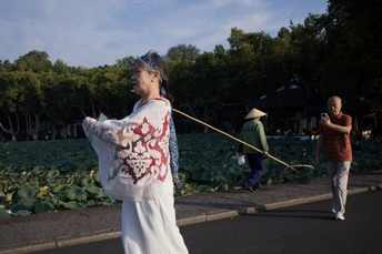 晨光轻轻洒在湖面,当西湖还没有完全苏醒过来的时候,游客们已经踩着露珠而来,快门一声,把第一缕微笑存进相机;晨练者弯腰拉腿,呼吸与柳风同步,像给新的一天做序。不远处,五彩风筝被风托起,像似就要把童年放上天。孩子们追着影子跑,惊起白鹭两三。西湖的清晨,没有围栏,快乐自由取景,每一帧都是人间值得收藏的温柔。