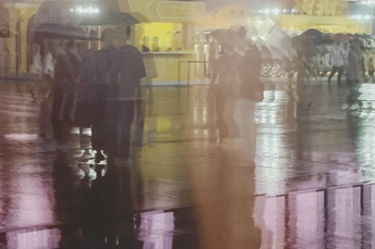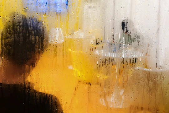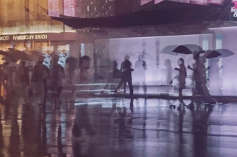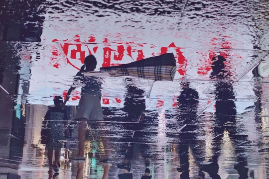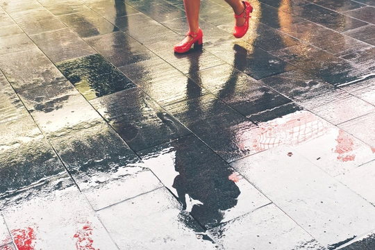 雨夜,灯色被纱幕轻轻揉碎,洒在湿漉的街。玻璃橱窗蒸出薄雾,像谁呵气写未寄出的句子。你蹬着一双红皮鞋,鞋底踏过轻涟,溅起细碎的星屑,透过手里的透明伞,霓虹被水纹拉长,像印象派偷偷改名,一抹绯、一捻青,行人隔纱,面孔是模糊的邮票,寄往不知名的温柔乡。世界被雨夜捻成一颗朦胧的琥珀。此刻,浪漫不需要名字,