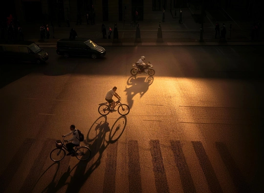 阳光从树叶的罅隙间筛下来,碎成点点光斑,在灰黑的人行道上跃动。摄影者立在那里,等候着某个行人踏入这光的碎影之中。玻璃幕墙反射出刺目的白光,水洼里也倒映着零落的光片,竟像是天上的星子不慎跌落人间了。 都市的喧嚣似乎被这些碎光所柔化,连汽车的鸣笛也显得遥远。行人匆匆踏过那些光斑,却浑然不觉自己正踩碎了一地的亮片。孩童试图伸手捕捉那闪烁不定的光点,自然是徒劳,却兀自嬉笑不已。 这碎光稍纵即逝,而相机所能攫住的,不过时光的片羽。