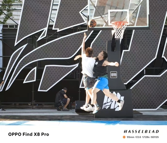 这张篮球运动摄影作品捕捉到了精彩的瞬间,两位球员在空中争夺篮球,展现了运动的活力和竞争的激烈。摄影师成功定格了球员们跳跃的姿态,篮球的位置也恰到好处,营造出一种紧张而激动人心的氛围。构图上,篮球架作为背景,突出了运动的主题,人物与篮球架的比例也较为协调。光线充足,细节清晰,色彩明快,使得画面整体显得生动活泼。此外,背景的图案也为照片增添了一些现代感和设计感。总的来说,这是一张不错的体育题材摄影作品,具有一定的观赏性和纪念意义。