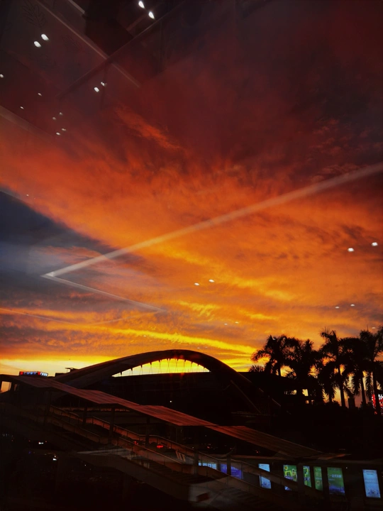 9月18日傍晚,当时我正在东莞市鸿福东路01号加班,用手机记录了窗外的城市风景/🔥烧云。