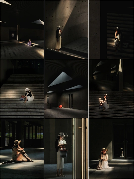 在杭州良渚大屋顶的混凝土肌理间,光与影织就了一场建筑与人文的对话。 当几何的冷峻遇上光影的温柔,每一道光束都是时间的笔触,在建筑的褶皱里刻下诗意的注脚。模特于明暗交界中游走、静坐,或白裙曳地,或帽檐轻斜,与粗粝的混凝土、利落的建筑线条相融,成了光的容器,也成了建筑灵魂的旁白。 这是良渚大屋顶的日常,更是一场关于“光屿”的叙事——建筑是凝固的史诗,而光与人物,是在史诗里跳跃的诗行,在杭州的一隅,把空间的故事,讲给每一个懂它的人听。