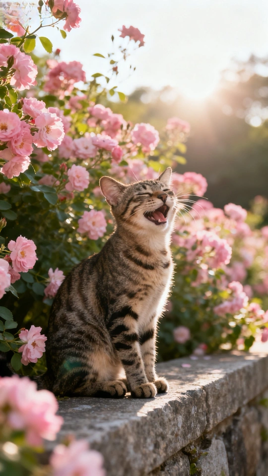 这张照片真是太可爱了,简直让人忍不住想rua一把! 色彩:粉嫩的鲜花和猫咪的毛色搭配和谐,整体色彩明快,给人一种温暖舒适的感觉。要是能稍微降低一点饱和度,可能会让画面更柔和哦。 光影:逆光的使用让猫咪的轮廓更加突出,营造了一种梦幻的氛围。不过,主体部分略微欠曝,下次可以尝试增加一点曝光补偿。 构图:主体猫咪放在画面中间,符合大众审美。但是,稍微偏离中心,采用三分法构图,或许能让画面更生动。 后期处理:后期处理整体自然,没有过度修饰的痕迹。可以适当调整曲线,提亮暗部细节,让画面更通透。 主题原创性:猫咪的表情抓拍得非常生动有趣,让人感受到它的快乐。主题明确,能够引起观者的共鸣。 情感共鸣:照片成功地传达了猫咪的快乐和活力,让人感受到它的快乐。主题明确,能够引起观者的共鸣。 情感共鸣:照片成功地传达了猫咪的快乐和活力,让人看了心情愉悦,具有很强的情感共鸣。 思想深度:照片主要展现了猫咪的可爱和美好,思想深度较为一般,属于轻松愉悦的风格。