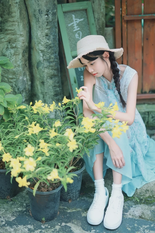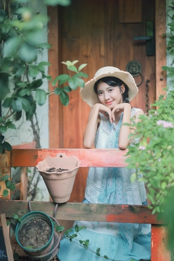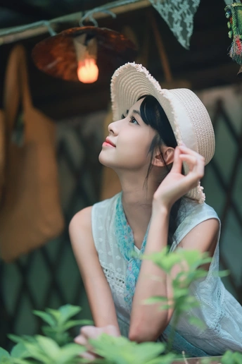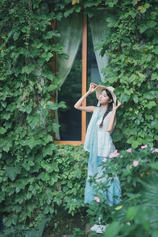 在这组画面里,草帽、碎花、绿植与旧物,都晕染着《从前慢》的韵致。 时光似被拉得绵长,她在草木间轻嗅花香,于灯下静享阅读,每一刻都慢得像一首怀旧的诗,把从前的悠然与恬淡,娓娓道来。