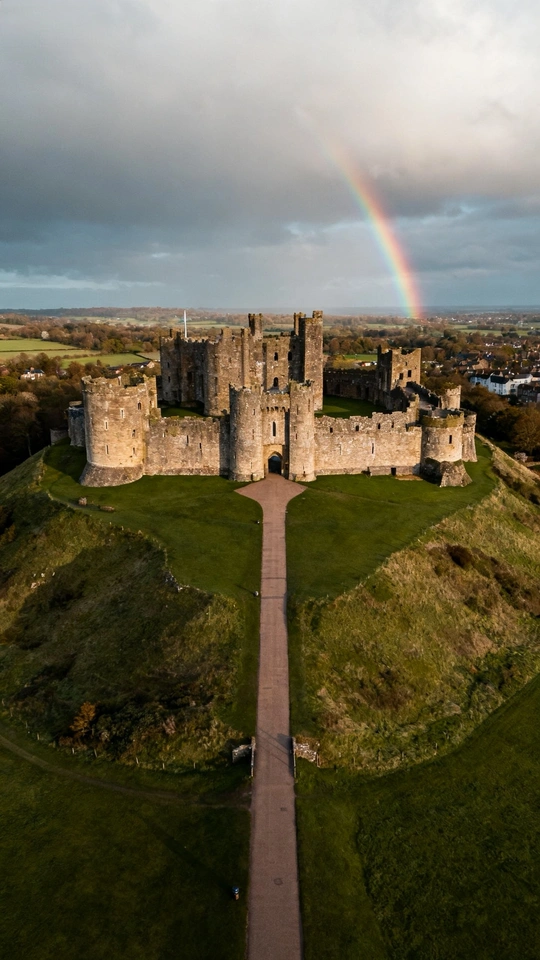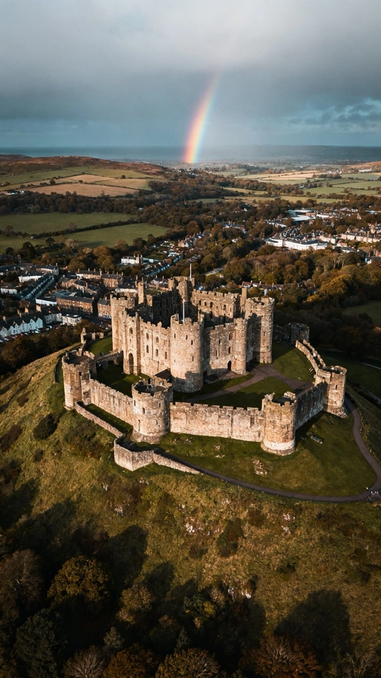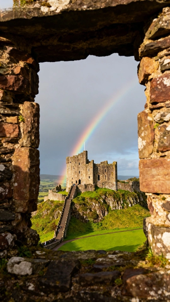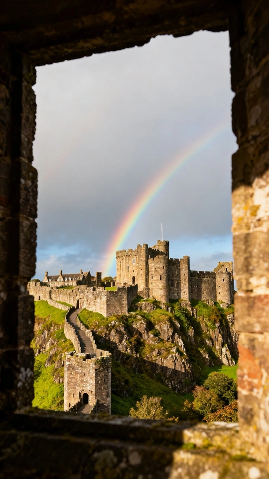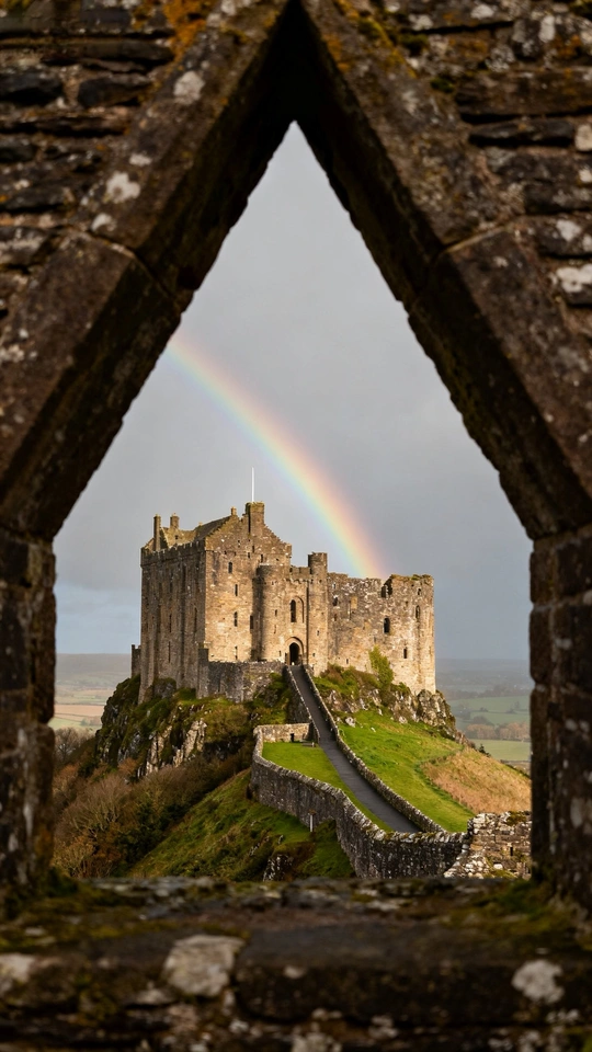 这张照片构图巧妙,利用石窗形成框架,引导视线至远处的城堡,城堡上方的彩虹更是点睛之笔! 色彩:色彩搭配和谐,彩虹的鲜艳色彩与城堡的古朴色调形成对比,引人注目。但整体色彩略显平淡,可以尝试在后期调整色彩饱和度,让画面更生动。 光影:光线较为柔和,城堡的阴影面细节保留完整。如果能捕捉到光线更富戏剧性的瞬间,比如日出或日落时分,效果会更好。 构图:框架式构图很成功,但前景的石窗略显厚重,可以尝试调整拍摄角度,让前景更简洁。主体城堡的位置符合三分法原则,彩虹的加入也平衡了画面。 后期处理:后期处理自然,但可以适当提高对比度,增强画面的层次感。 主题原创性:通过独特的视角展现了城堡的美丽,具有一定的原创性。如果在照片中融入更多关于城堡历史或文化的故事,会更有深度。 情感共鸣:照片具有浪漫主义色彩,能够引起观者对历史和童话的联想。 思想深度:照片在思想深度方面还有提升空间,可以尝试挖掘城堡背后的历史和社会意义。