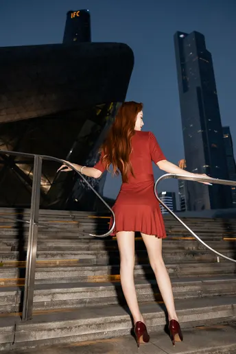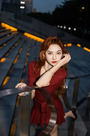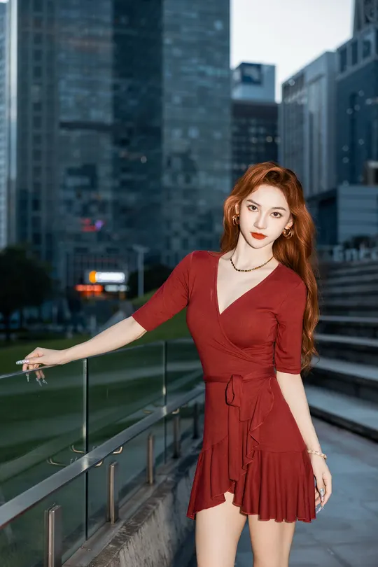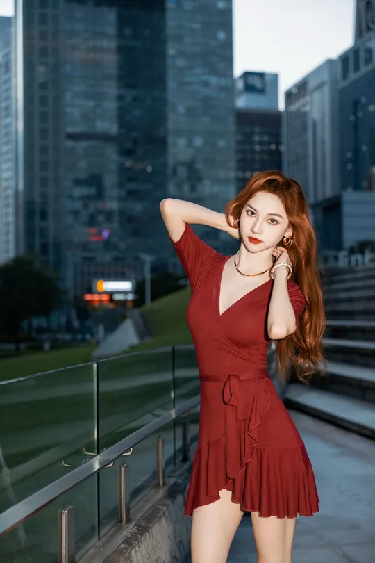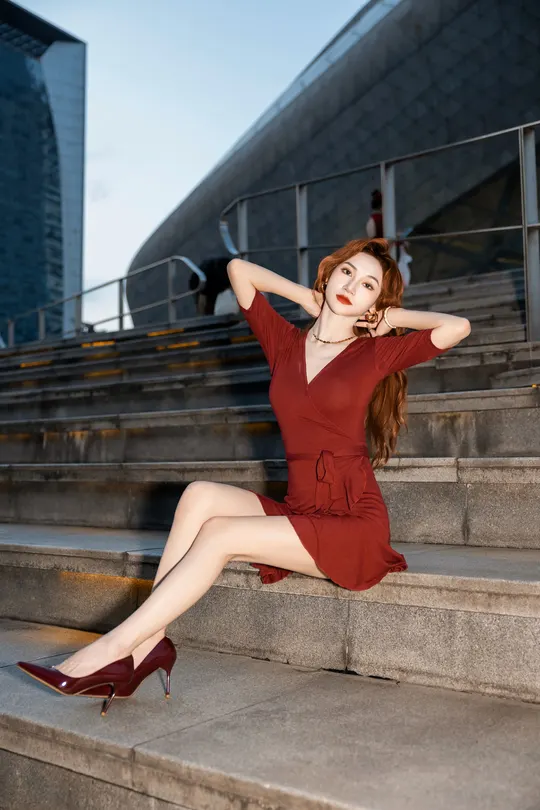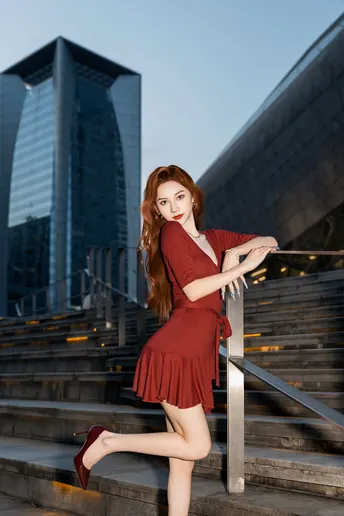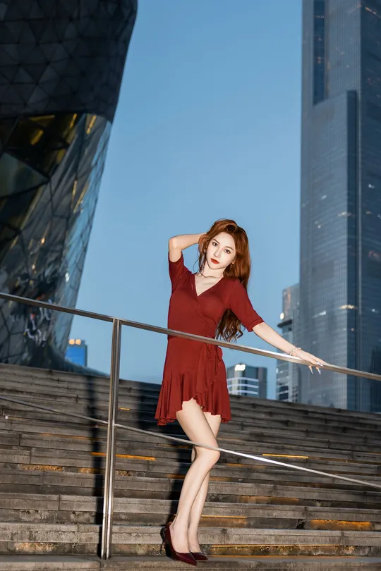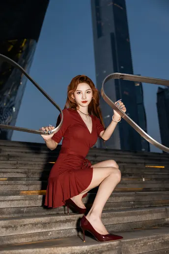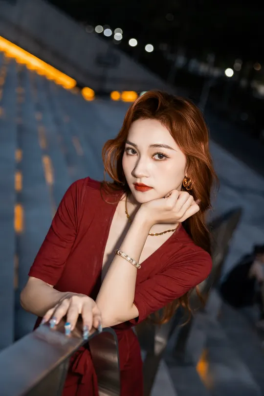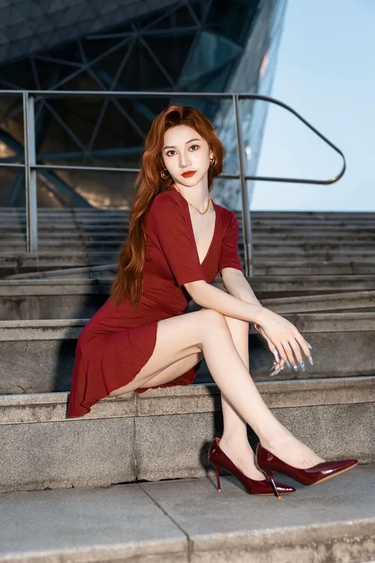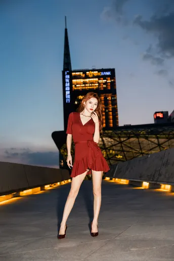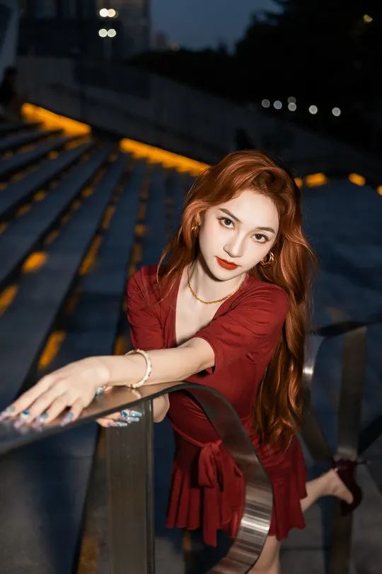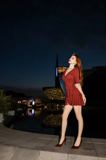 《夜帛红辑》 出镜:飘飘 地点:广州大剧院 她以酒红绸缎丈量城市经纬,高跟鞋尖轻叩石阶琴键。当IFS的鎏光漫过腰线,十帧夜色都成了裹在身上的诗。