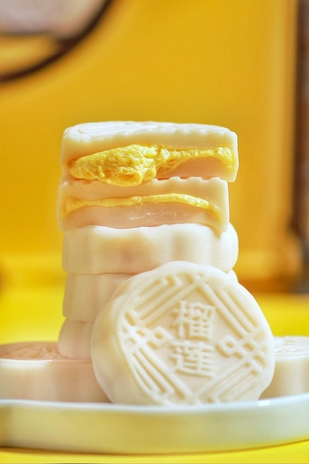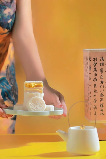 中秋节即将到来,拿家里的榴莲月饼拍几张。 这款榴莲冰皮饼,是传统与创新的绝妙融合。冰皮软糯绵密,如月光般细腻;内馅选用饱满榴莲果肉,金黄绵密,一口咬下,浓郁果香在舌尖炸开,层次丰富得叫人惊艳。 搭配一壶清茶,看旗袍佳人轻执茶盏,在墨香书卷的映衬下,饼上“榴莲”二字的浮雕纹理愈发精致。独立小包装的明黄配色,既衬得饼身莹白如玉,又添了几分节日的吉庆。 它不止是一枚饼,更是中秋餐桌上的风雅新宠——让你在品味榴莲馥郁的同时,也能感受国潮点心的精巧匠心,为团圆时刻烙下一口入魂的独特记忆。 点评:第一张摄影作品整体呈现出一种清新、甜美的氛围。从构图上看,主体月饼堆叠在盘中,占据了画面中心,视觉焦点明确。背景的黄色与月饼的白色形成了鲜明的对比,色彩搭配大胆而和谐,增强了画面的吸引力。光线运用较为柔和,阴影的处理也比较自然,使月饼的质感得以较好地展现。在主题意义上,作品传递出中秋佳节团圆、甜蜜的美好寓意。但如果能在细节上再加把劲会更好,例如可以尝试不同的拍摄角度或者调整背景的虚化程度,可能会带来更出色的效果。 @米拍 @米拍社长 @米拍小助手 @米拍编少