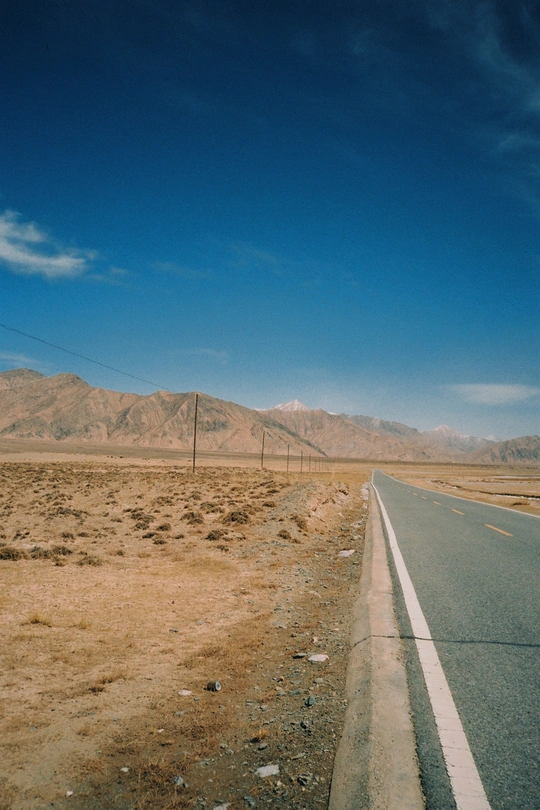 踏入青海,邂逅那梦幻般的“青海瑶池之路”。它就像一条时光的长河,静静地流淌在这片神奇的土地上。公路笔直而又纯粹,一路向前,似要奔赴那传说中的瑶池仙境。两旁的戈壁,像是岁月留下的沧桑印记,稀疏的干草在风中轻轻摇曳,诉说着古老而又遥远的故事。远处的雪山,宛如一群巍峨的巨人,守护着这片神圣的净土。湛蓝的天空没有一丝云彩,仿佛是被这美景所震撼,变得格外安静。“青海瑶池之路”,是大自然谱写的一首无声赞歌,每一寸风景都让人沉醉,每一眼凝望都让心灵得到洗礼。 拍摄时间:2025年3月25日 拍摄地点:青海昆仑山联合教科文组织世界地质公园瑶池段 拍摄器材:柯尼卡bigmini a4 (35mmf3.5)胶卷:巨星200 扫描仪:sp3000