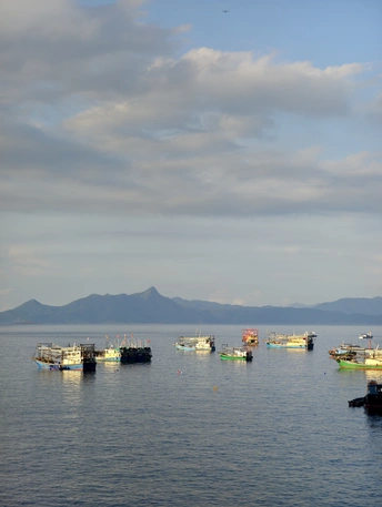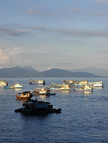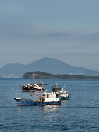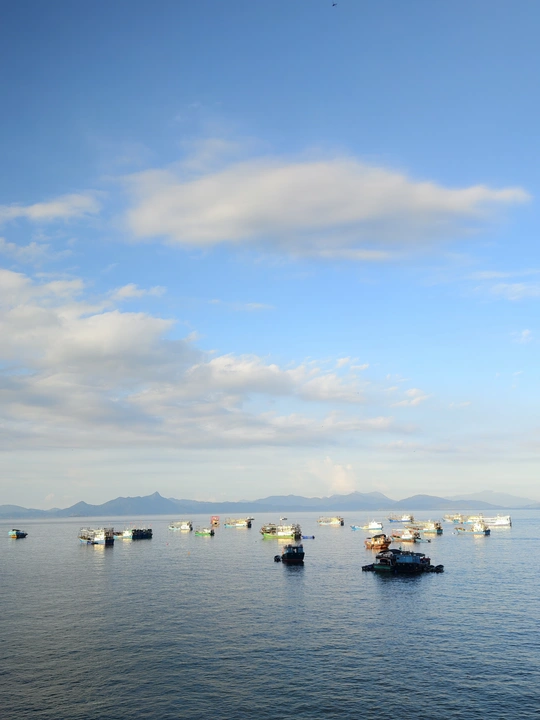是清晨的一缕光,照射到海上,船上,山上,房子上。