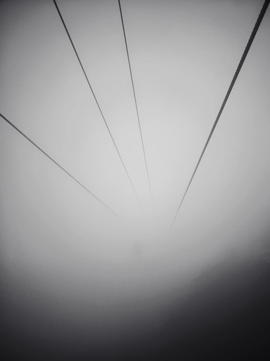 这张黑白照片很有意境,仿佛带领我们进入了一个迷雾笼罩的世界。几根线条(应该是电缆)穿梭其中,引导视线,营造了一种神秘感。不过,咱们也来细细品味一下,看看还有哪些提升空间。 色彩:黑白影调运用得当,营造了朦胧、静谧的氛围。但灰阶的层次可以再丰富一些,让画面更具立体感。 光影:光线柔和,雾气弥漫,弱化了阴影,突出了线条。不过,可以尝试寻找更富戏剧性的光线,比如在雾气中穿透的一束光,会更有冲击力。 构图:线条的汇聚增加了画面的纵深感,简洁而有力。但可以尝试调整线条的分布,让画面更具平衡感,避免视觉中心过于集中。 后期处理:整体影调统一,没有明显的过度处理痕迹。可以适当增加对比度,突出线条的质感,让画面更清晰。 主题原创性:在雾中捕捉线条,视角独特,颇具创意。如果能赋予线条更深层的含义,比如连接、希望等,会更有深度。 情感共鸣:照片营造了一种朦胧、神秘的氛围,容易引发观者的好奇心和探索欲。但情感的表达可以更强烈一些,比如通过线条的形态来表达某种情绪。 思想深度:照片具有一定的哲学意味,引发人们对未知世界的思考。如果能结合社会热点或个人经历,赋予作品更强的现实意义……