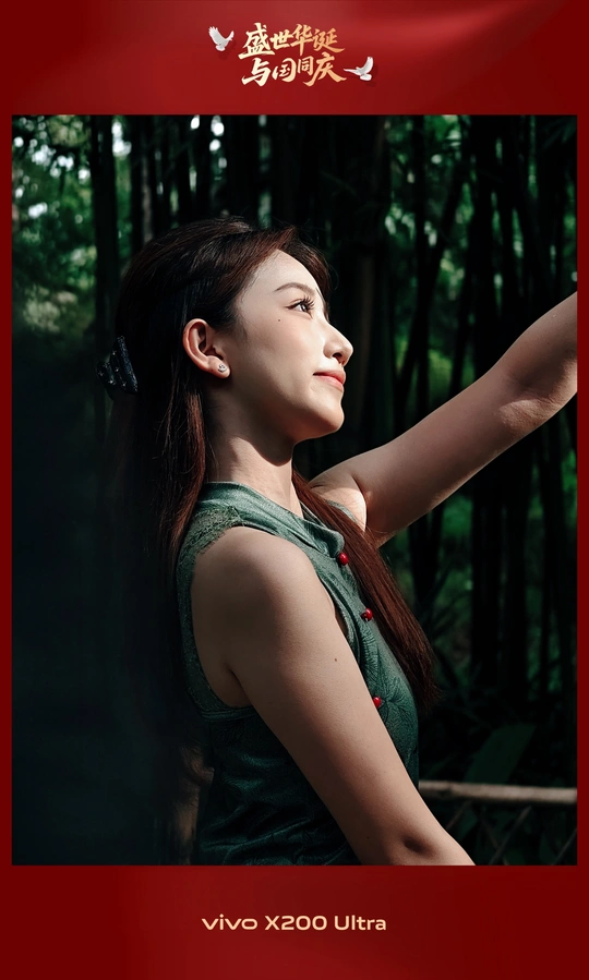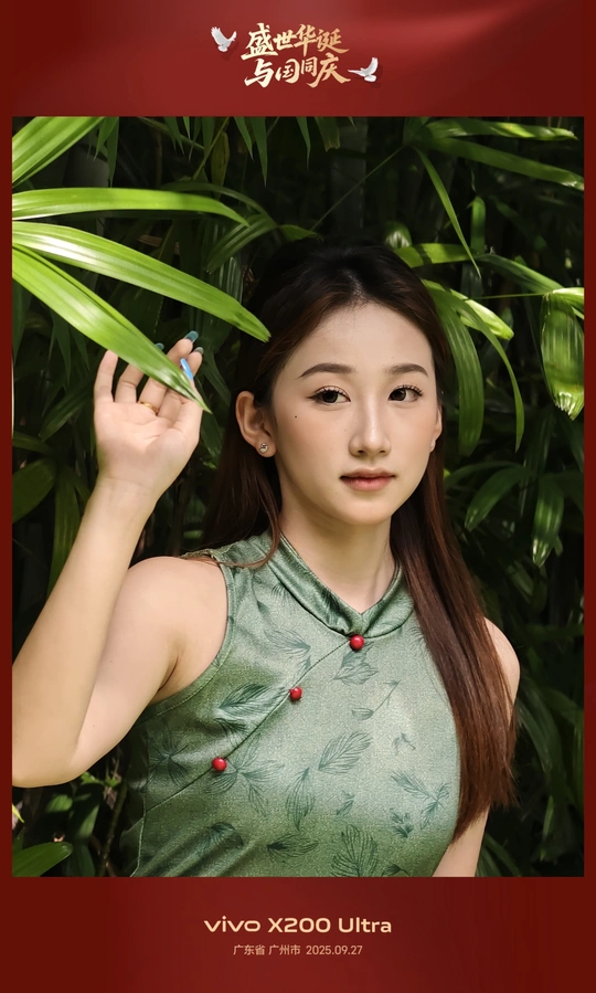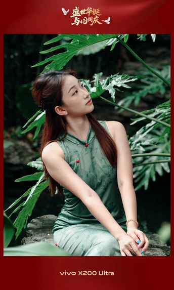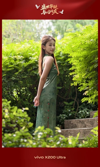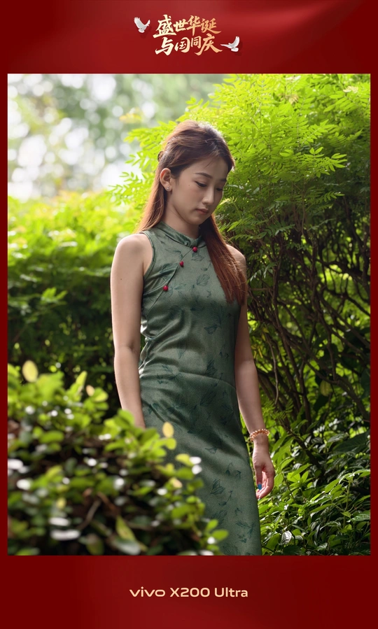 广州的兰圃,一个模仿苏州园林的精致公园,其间竹林密集、小径通幽、小桥流水,是打卡的理想场所。一位穿着墨绿色旗袍的小姐,与周围葱郁的绿色完美融合,静静地在镜头前度过了一个摄影的午后。