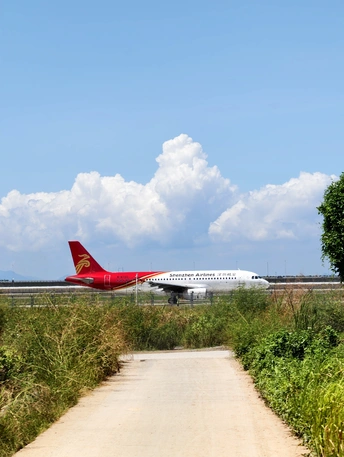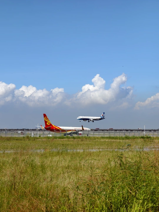 机场附近的大片荒地,一架架飞机起飞的声音。