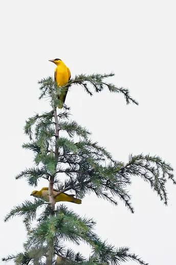 双鹂戏松间