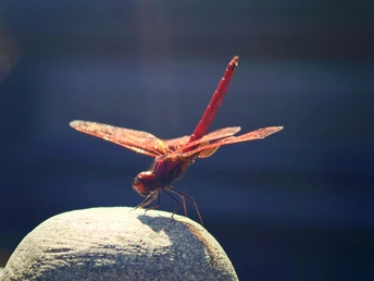 晨光为翅尖镀上碎金,这抹跃动的赤红,是夏的信使,正以复眼凝视世间温柔。