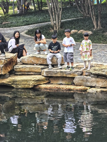 #祎璠纪实# #手机365-3255# 国庆长假的街头巷尾,祖孙间的亲昵互动满是温情,孩子指着红旗的好奇模样,是对世界最初的探索;集市上的人潮里,人们在琳琅满目中寻觅着小确幸,那一个个卡通气球,是童年最绚烂的梦;艺术展厅中,人们在光影与画面里与艺术对话,于静谧中品味文化的芬芳;公园湖畔,大人孩子围坐石边,看水波荡漾,任时光慢淌…… 每一幕都是平凡生活的生动注脚,在这些瞬间里,我们触摸到了生活最本真的温度,也读懂了幸福的模样。