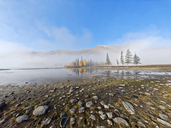雾气是山与水的呼吸,在河谷间流淌、缠绕。林木披上薄纱,湖水藏起碧色,整个世界都被调成了静谧的灰白滤镜。 你会明白这里为何叫神仙湾了吧。
