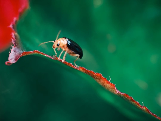 在这片由叶片搭建的红色栈道上,一位身披黑甲的小探险家正奋力地向上攀爬。 当镜头将世界放大,我们才发现,那些被忽略的角落,正上演着比史诗更动人的生存诗章。