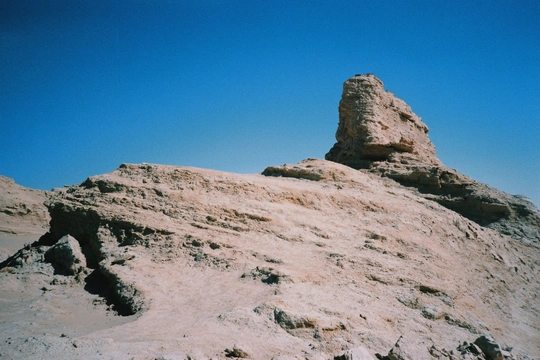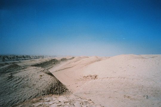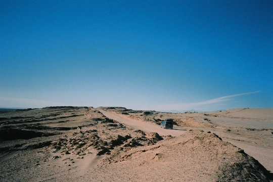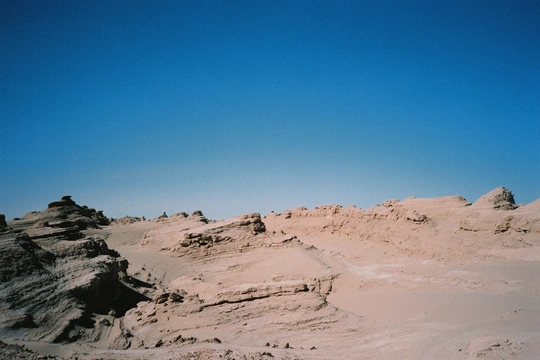 自青海火星公路驶往石油小镇路上,沿途景色堪称大自然鬼斧神工之杰作。火星公路两侧,广袤无垠的雅丹地貌在岁月与风沙的雕琢下,呈现出千奇百怪的形态,如古堡、似怪兽,在苍茫天地间诉说着古老的地质变迁。继续前行,目之所及是荒芜却又充满力量的戈壁,砾石在阳光下闪烁着冷峻的光芒。 拍摄时间:2025年3月27日 拍摄地点:青海火星公路 拍摄器材:柯尼卡bigmini a4 (35mm f3.5)胶卷:巨星200 扫描仪:sp3000