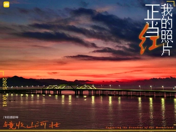我的双节小美好 追逐一场浪漫的日出 当第一缕晨曦尚未划破天际, 东海岸大桥已在粉紫朝霞与墨色乌云的交织中苏醒。