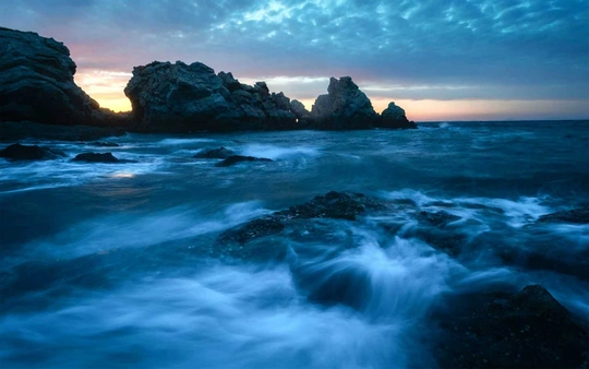 当天拍摄时阴天,好在海浪很大,等收工往回赶的时候,突然彩霞满头,立即掉头往海边赶,一头冲进礁石群,由于涨潮后的位置改变,好不容易找到一块容易站立的礁石,定格了这一幕。