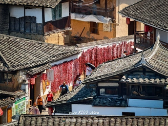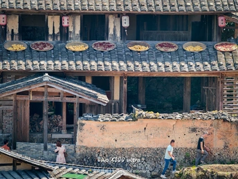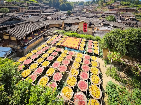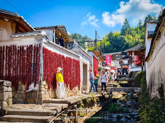 在桂峰古村的时光里,灰瓦白墙与斑斓晒秋撞个满怀。红辣椒似流苏挂满墙,玉米、干果在笸箩里铺成调色盘,古厝错落间,石径通幽,游人穿梭,岁月在此凝成一幅烟火与古韵交织的画卷,每一处角落都藏着闽地古村的诗意与温情。