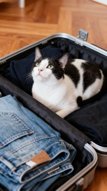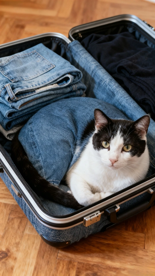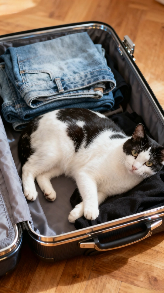 这张照片捕捉了一只猫咪在行李箱里的可爱瞬间,整体而言还不错,但还有提升空间。下面是详细的评价和建议: 色彩:色彩搭配和谐,黑白猫咪与蓝色牛仔裤形成对比,但整体色彩较为平淡,可以尝试在后期处理中略微调整色彩饱和度。 光影:光线均匀柔和,但缺乏立体感,猫咪面部略显平坦。建议尝试利用侧光或顶光,营造更丰富的光影效果,突出猫咪的轮廓和纹理。 构图:构图略显平淡,猫咪位于画面中央,缺乏视觉引导。可以尝试使用三分法构图,将猫咪放置在黄金分割点附近,或利用行李箱的线条引导视线。 后期处理:后期处理自然,但可以适当提高对比度,使画面更具层次感。注意不要过度修饰,保持照片的真实性。 主题原创性:主题温馨有趣,但缺乏新意。可以尝试从更独特的角度或场景来拍摄,例如将猫咪与旅行元素结合,讲述一个更完整的故事。 情感共鸣:照片能够引起观者的喜爱之情,但情感表达较为平淡。可以尝试捕捉猫咪更生动的表情或动作,增强照片的感染力。 思想深度:照片主要以趣味性为主,缺乏更深层次的思考。可以尝试通过照片表达人与动物之间的情感,或引发对旅行、家的思考。