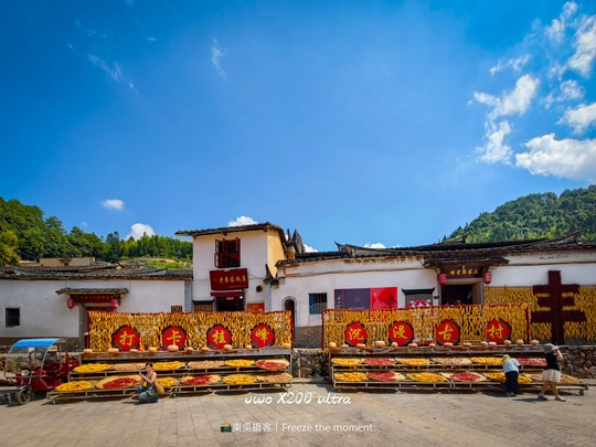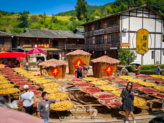 在桂峰古村,邂逅一场诗意的秋日盛景。 青石板路蜿蜒,红红灯笼高挂,百年古厝在蓝天白云下静静伫立。家家户户晒满金黄的玉米、火红的辣椒,是丰收的喜悦,更是岁月的温柔。 这里的一砖一瓦都藏着故事,每一缕风都带着古朴的气息。漫步其中,仿佛穿越回旧时光,看农耕文明的印记在眼前鲜活,感受古村与自然的共生之美,让心灵在这方天地间,寻得一份久违的宁静与惬意。