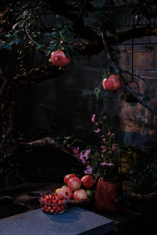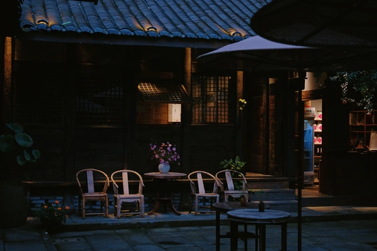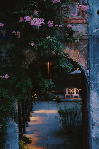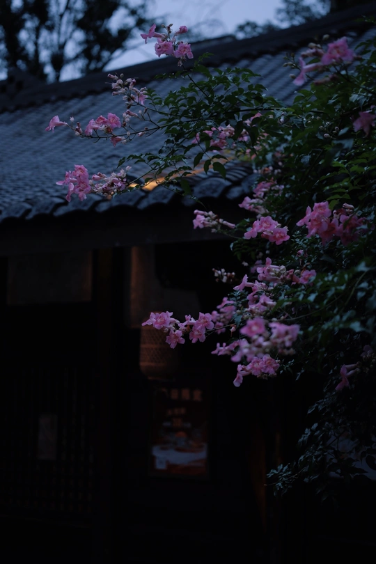 10.6,中秋节,傍晚时分温江文庙印巷里的光祈小院,紫色的花,灯火阑珊。