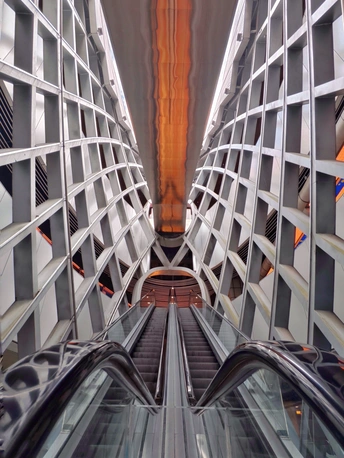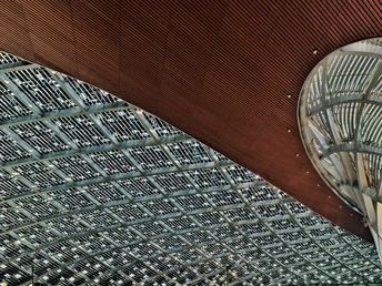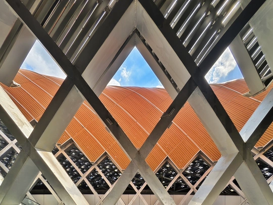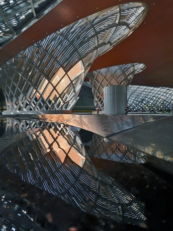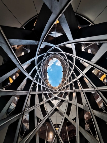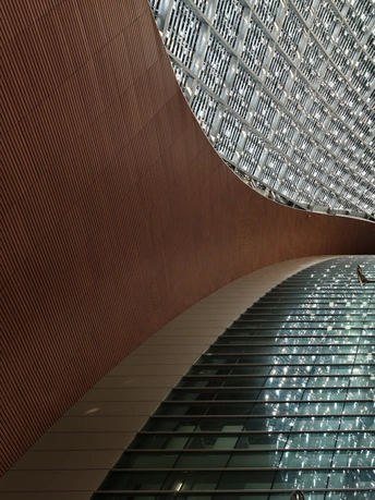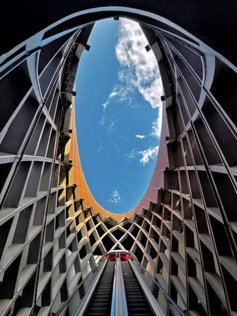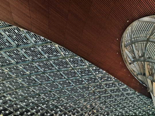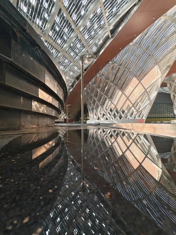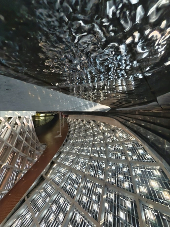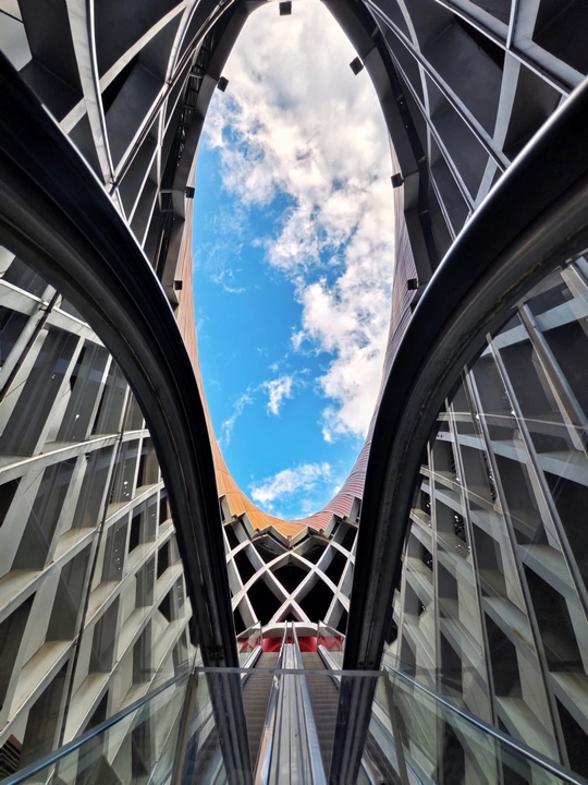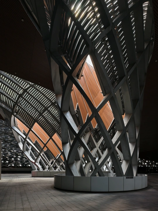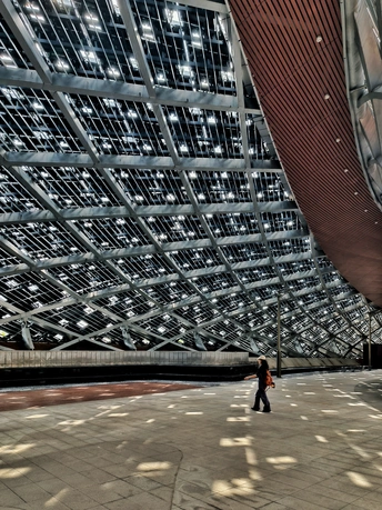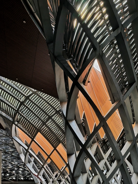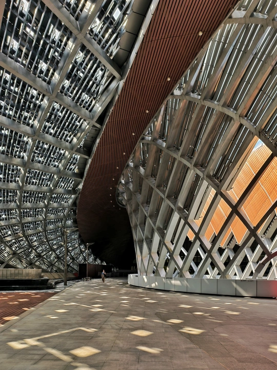 杭州奥体中心游泳馆 | 建筑美学盛宴 宝子们,杭州奥体中心游泳馆的建筑,简直是现实版的科幻大片取景地! 那极具未来感的外观,金属与玻璃交织,线条流畅又富有张力,像是从科幻小说里走出来的神秘堡垒。内部空间更是让人惊叹,交错的结构,在光影的映照下,呈现出迷人的层次感。 透过独特的镂空设计,阳光洒下,地面和墙壁上光影变幻,美得让人移不开眼。从扶梯向上望去,那深邃的通道,仿佛通往另一个时空。每一个角度,都能发现建筑设计的精妙之处,将功能性与艺术性完美融合,妥妥的建筑美学天花板,随手一拍都是视觉大片! #杭州奥体中心游泳馆 #建筑摄影 #杭州打卡地 #未来感建筑