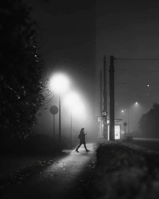这照片里,世界只剩下黑与白。 深灰的影,浅灰的光,像时间凝固时呼出的薄雾。黑色的轮廓在相纸深处低语,白色的高光如初雪般寂静。 那些被彩色掩盖的纹理——老人脸上的沟壑、旧墙剥落的痕迹、晨雾中的远山——此刻都显露出最本真的模样。黑是夜的沉淀,白是昼的初心,所有喧嚣的色彩褪去后,生命呈现出如此简洁而丰富的层次。 在黑白之间,我看见了比真实更真实的永恒。