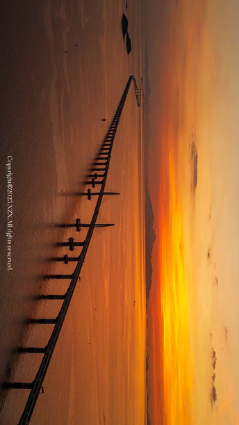 当太阳跃出海面,风帆塔突然有了生命——它不再是混凝土建筑,是迎着朝霞启航的巨轮,是连接湾区的光的坐标。海风裹着暖意拂过镜头,连影子都成了向光明奔赴的形状。