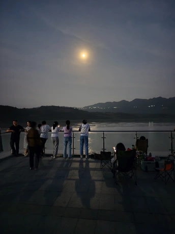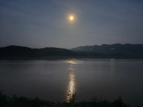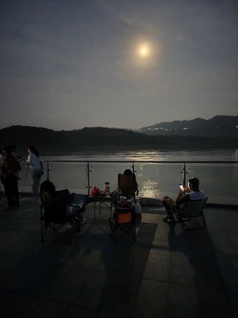 重庆的中秋,很难得见到圆月,到江边赏月,大雅。