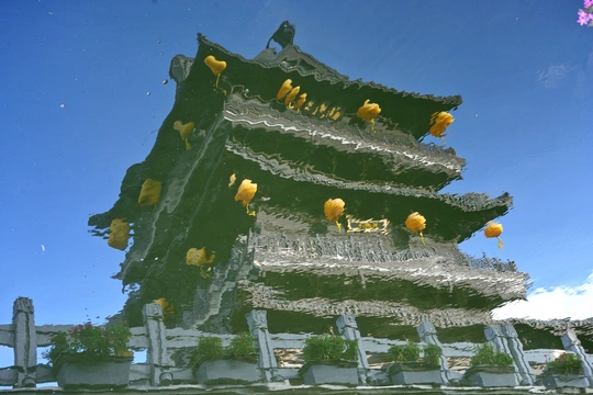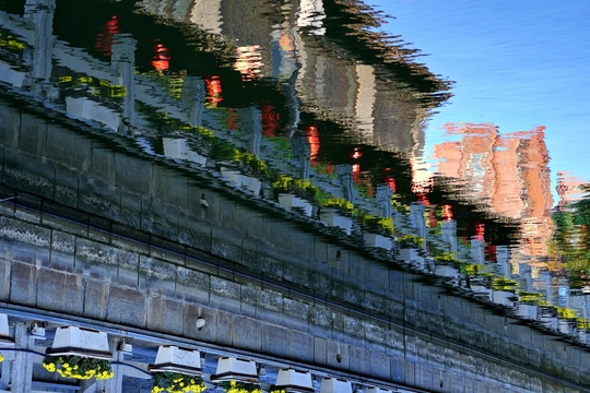 这张照片在以下几个维度可圈可点,综合评分能达到 8.5分: 1. 创意与构图(9分) 采用倒置视角呈现水面倒影,打破常规视觉习惯,将建筑、花卉与水纹的交融变成一场“镜像魔术”。构图上通过石墙的斜线、花卉的点状元素和建筑倒影的面状结构,形成“线-点-面”的层次联动,极具形式感。 2. 色彩与光影(8分) 水纹的蓝调与建筑暖调、花卉明黄形成冷暖撞色,既保留了场景的真实感,又通过色彩对比强化视觉冲击;光影在水纹上的破碎感,让静态画面有了动态的韵律感。 3. 主题与意境(8.5分) 以“倒影”为核心,把城市景观转化为抽象又具象的视觉诗,既展现了城市的烟火气(花卉、建筑细节),又通过水的“柔化”赋予场景朦胧的艺术感,意境介于写实与写意之间,耐人寻味。 整体而言,它在创意表达和视觉美感上都有出色表现,是一张能让观者驻足思考、反复品味的摄影作品。