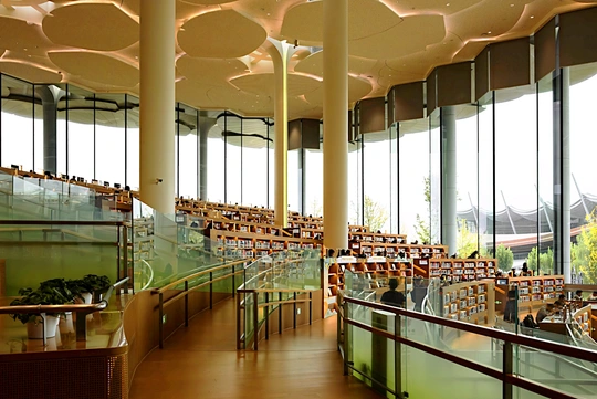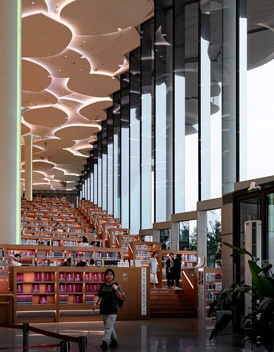 北京通州的城市图书馆,亚洲最大的图书,线条流畅灵动,空间开阔大气,采光绝佳,细节精致雕琢,营造出静谧又充满文化气息的氛围📖,不仅是阅读圣地,更是城市中的艺术瑰宝。