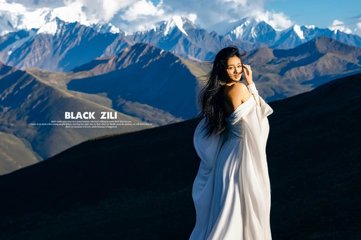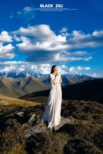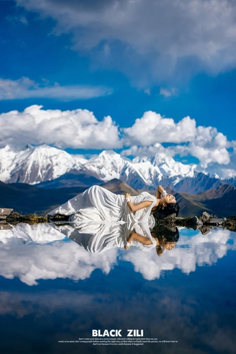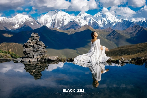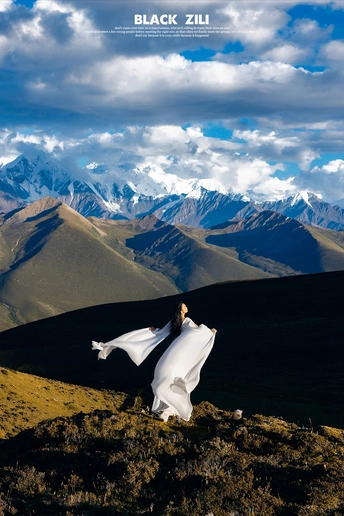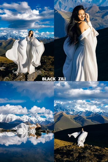 贡嘎山下|提弄秘境 贡嘎山下 白云是未裁的绸 雪山是凝固的浪 白裙如羽 在风里写诗 每帧都是天地的情诗 出镜:江茳