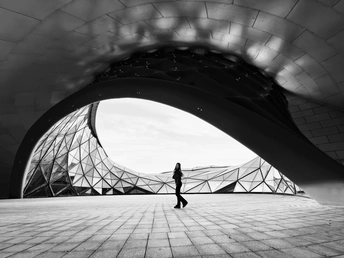 在黑白的镜头语言里,建筑的线条与光影共舞,人的身影为城市空间注入温度。从复古建筑的精致雕花,到现代建筑的几何狂想,从水岸阶梯的韵律,到穹顶下的梦幻,每一幅画面都是城市性格的切片,在明暗之间,讲述着关于建筑、人文与时光的故事。