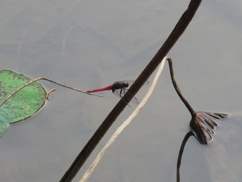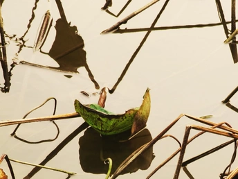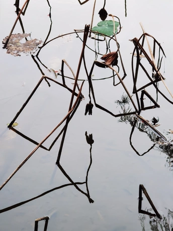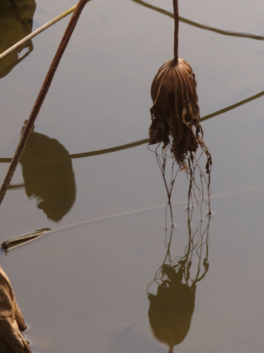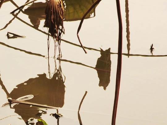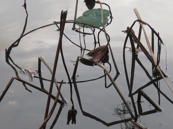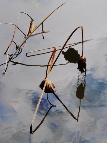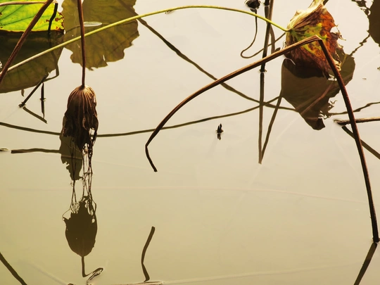 秋日的荷塘里,看不见往日的娇媚艳丽,只留下了风骨依然。
