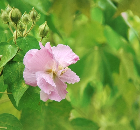 广州流花湖公园芙蓉洲,宛如梦幻之境。木芙蓉在此肆意绽放,粉白花朵似繁星洒落。花瓣轻柔如丝,在风中浅笑低吟。湖水波光潋滟,映着芙蓉娇容。漫步洲间,花香沁人心脾,仿若踏入人间仙境,让人心醉神迷,不舍离去。