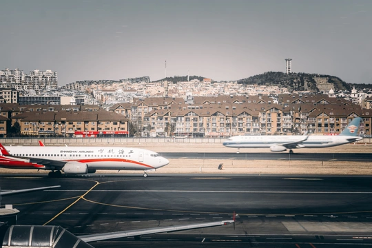 画面以跑道为引,让客机成为连接“天空”与“城市”的视觉锚点。远处房屋沿山势铺展,与金属机翼的冷硬线条形成软硬度对比,暗合“停泊”不仅是飞机的状态,也是城市对每一段旅途的无声接纳。 Shot on Lumix S1 2025.3.8