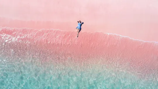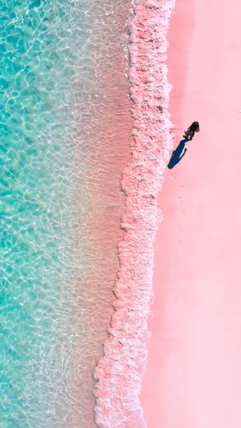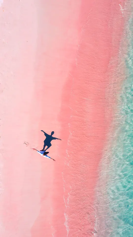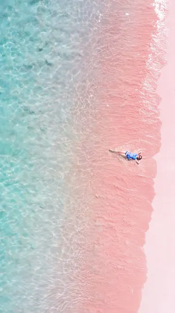 在印度洋的褶皱里 藏着地球最浪漫的配色一 一绿与粉的温柔碰撞,海与沙的平行梦境 天气和阳光对沙滩和海水影响都很大 友情提示千万不要大中午来 傍晚夕阳的时候绝对更粉嫩嫩愈