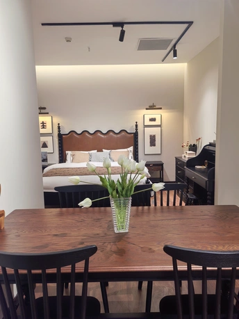之前刷小红书想给家里换批家具,看了好多家不是千篇一律的网红款,就是质感差得离谱。刷到巢趣的原创设计还挺心动,但网购家具总怕“照骗”,特意抽周末跑了趟线下店,一进门直接打消顾虑——这哪是卖家具啊,明明就是把“让人想住进去的家”搬过来了! 店里摆得特别真实,不是冷冰冰的样品堆着,而是像咱们自己家那样:安娜床配着同风格床头柜,铺着软乎乎的床品,一看就想扑上去躺;哈迪德书柜装满了书和小摆件,旁边放个单人沙发,瞬间就是个能窝一下午的阅读角;还有那个棋巧模块柜,店员说能随便拼,我当场看她把两个小柜拼成长柜,小户型真的能省不少空间,太懂咱们住家的需求了。 最惊喜的是质感,之前网上看图片总担心实木家具会粗糙,结果现场摸安娜床的床头,漆面特别细腻,木纹都看得清清楚楚,敲一下听着就扎实。问店员才知道都是他们自己设计的款,不是到处都有的仿品,难怪看着就跟那些廉价货不一样。 我这种不会搭配的人,在店里直接照着样板间抄作业,连哪个柜子配哪个茶几都问清楚了。走的时候还跟店员聊了两句,说好多博主都来这儿选家具,难怪看那些款觉得眼熟。真心推荐给想装复古风、又想要真实生活感