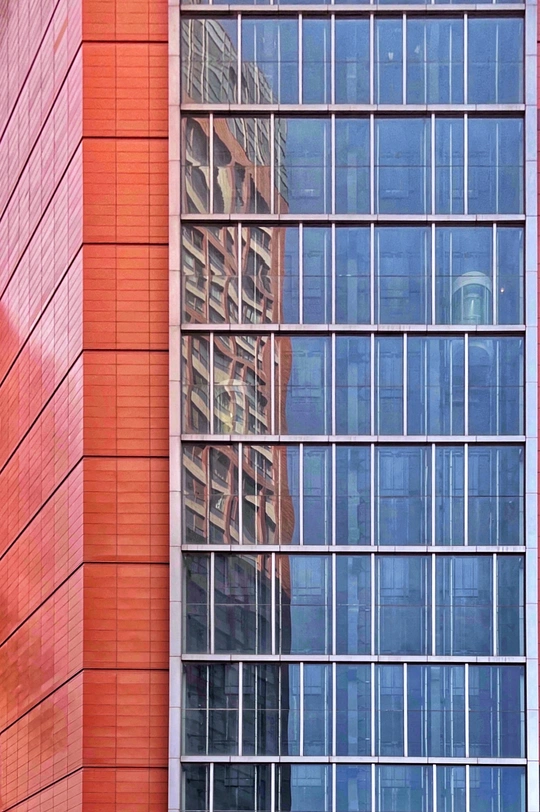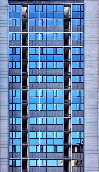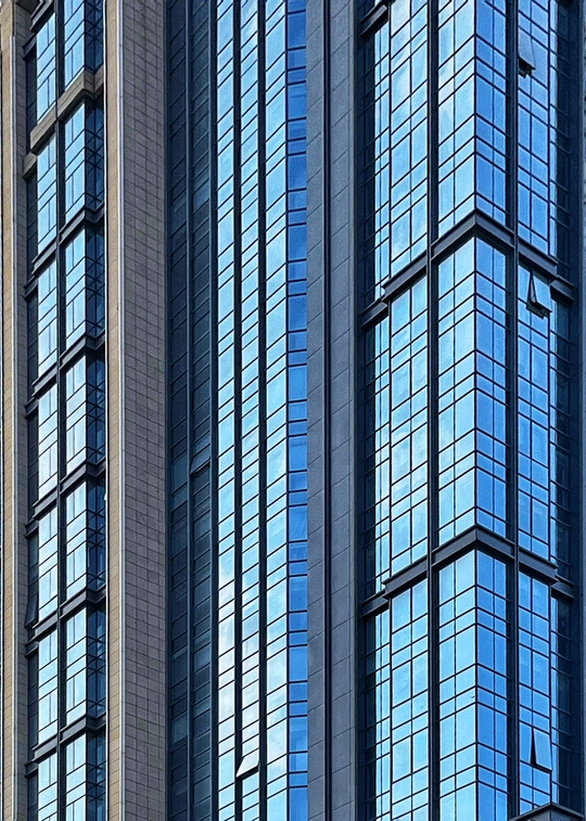 图七: 色彩:色彩搭配比较和谐,蓝色玻璃和米色外墙形成了冷暖对比,但略显平淡,可以尝试在后期调整色彩,让蓝色更通透,米色更有质感。 光影:光线比较均匀,缺少光影变化,导致建筑的立体感不强。下次可以尝试在侧光或者逆光的时候拍摄,利用光影来塑造建筑的轮廓和层次。 构图:构图规整,对称性较好,但略显呆板。可以尝试稍微倾斜角度拍摄,或者利用前景、背景等元素来增加画面的空间感和趣味性。另外可以尝试使用广角镜头,让建筑更具视觉冲击力。 后期处理:后期处理痕迹不明显,整体比较自然。可以适当提高对比度和锐度,让建筑的细节更清晰。但要注意适度,避免过度修饰。 主题原创性:主题比较常见,缺乏新意。可以尝试从独特的视角或者特殊的时刻来拍摄,或者通过后期处理来表达自己的想法和情感,让作品更具个性。 情感共鸣:画面比较平静,情感表达不够强烈。可以尝试通过色彩、光影、构图等手段来增强画面的感染力,或者通过后期处理来表达自己的情感。 思想深度: 画面比较客观,缺乏思想内涵。可以尝试通过作品来表达对城市、建筑、人文思考,或者通过后期处理来赋予作品更深层次的意义。